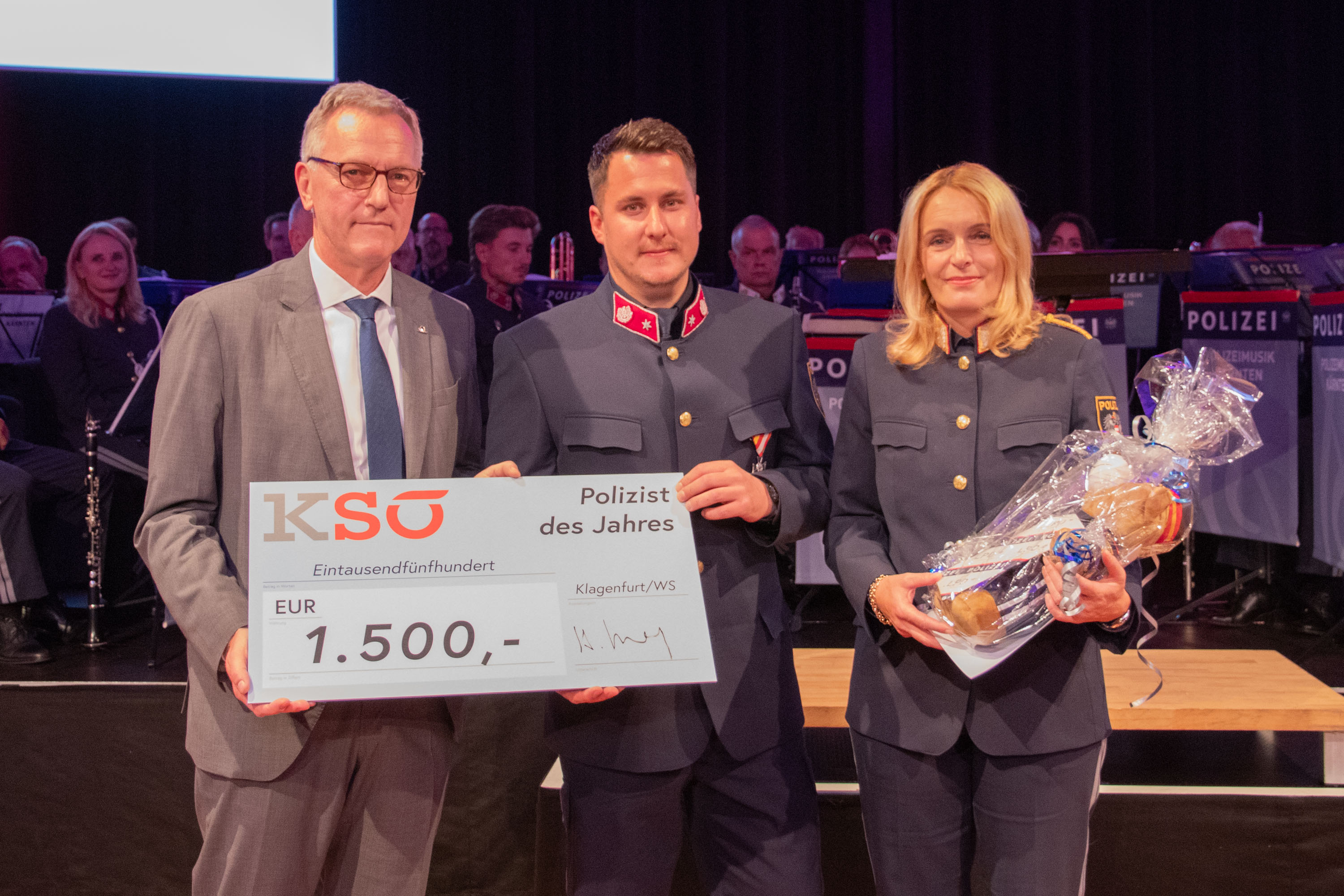 Der Höhepunkt des Abends war die Vorstellung des Polizisten des Jahres 2024. In diesem Jahr ging die Auszeichnung an Inspektor Philipp Salzmann der Polizeiinspektion Althofen. Hervorzuheben sind vor allem seine Erfolge im Kriminaldienst. So konnte er einen schweren Betrug mit einem Gesamtschaden von rund 1,2 Millionen Euro im Bezirk St. Veit/Glan aufklären oder einen Serientäter aus Spanien wegen Urkundenfälschung festnehmen. Daneben unterstützt er auch erfolgreich das Landeskriminalamt bei Ermittlungen und konnte so dazu beitragen, dass in einem Fall, bei welchem die Opfer durch K.O.-Tropfen betäubt und ausgeraubt wurden, Tatverdächtige ausgeforscht wurden.