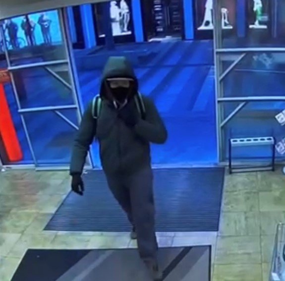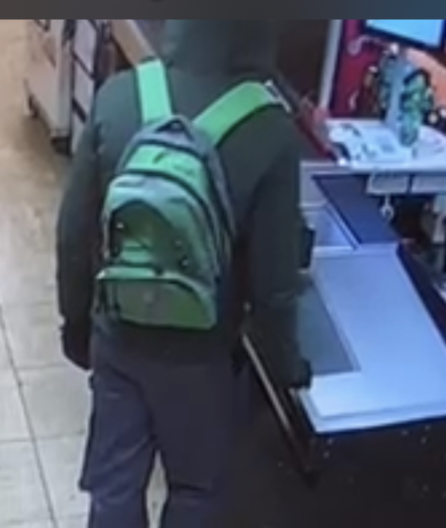 männlich, ca. 185 cm groß, schlank, dunkel bekleidet, er hatte die Kapuze seiner Jacke über den Kopf gezogen und trug eine schwarzen Mund-Nasen-Schutz, schwarze Handschuhe sowie einen auffälligen grünen Rucksack;