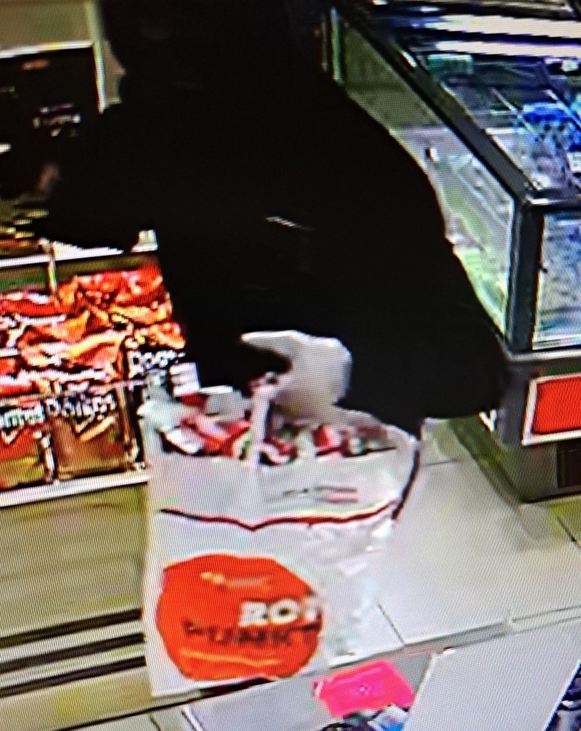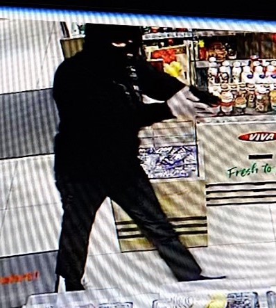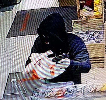 Mann, ca. 180 cm groß, normale Statur, bekleidet mit dunklen Schuhen, dunkler Hose, dunkler Kapuzenjacke, maskiert mit schwarzer Sturmhaube und Einweghandschuhen. Der unbekannte Täter war mit einer Pistole bewaffnet, die er in der linken Hand hielt. Er sprach hochdeutsch mit ausländischem Akzent. Während der Tat benutzte er eine weiße Papiertragetasche mit großem rotem Punkt und der Aufschrift "Rot-Punkt".