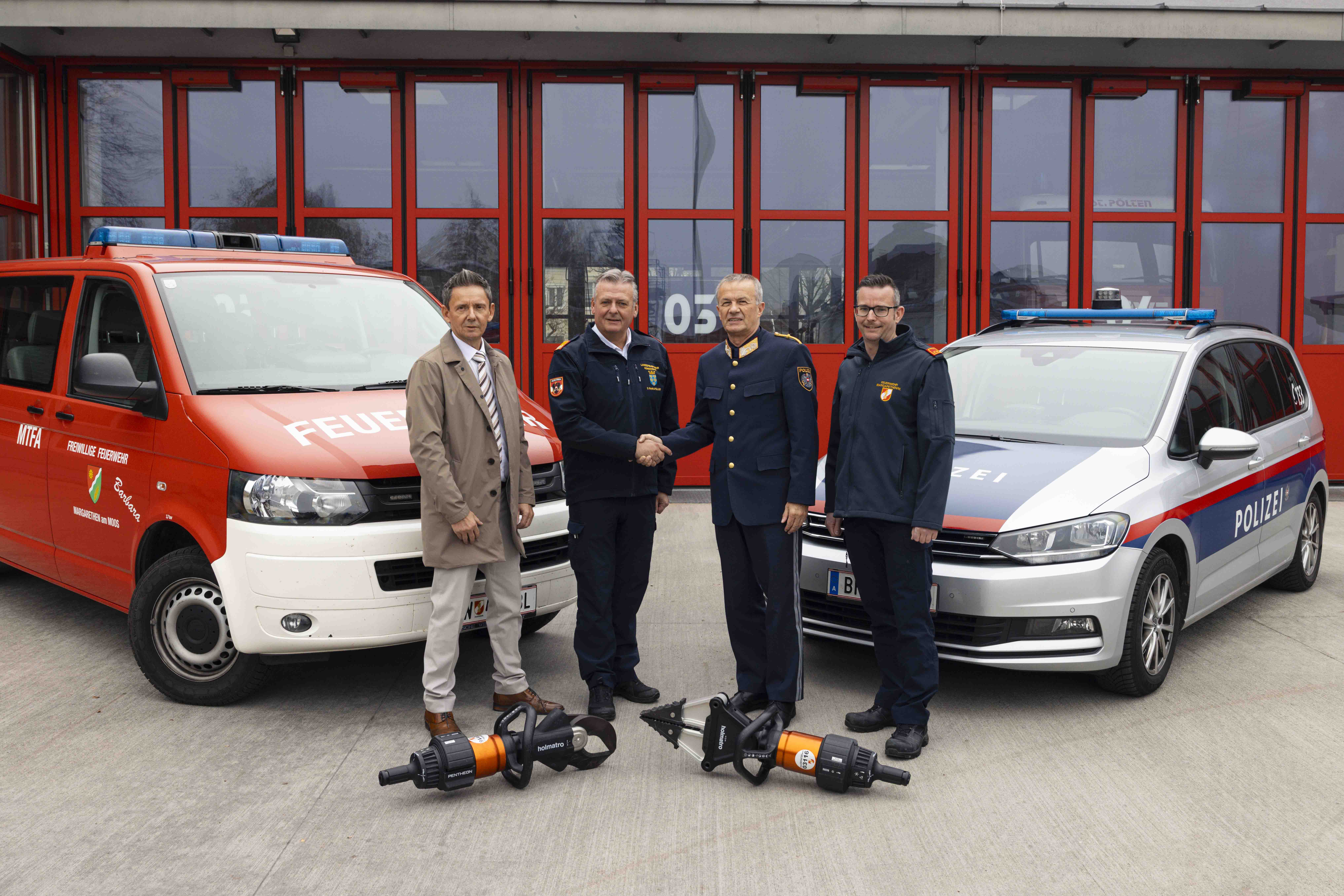 Die Beschuldigten verübten im August 2025 einen weiteren Einbruch in das Feuerwehrhaus in Margarethen/Moos, Bezirk Bruck an der Leitha und stahlen dort ein Akku-Rettungsset im Wert von rund 40.000 Euro. Dieses Rettungsset konnte im Zuge der Festnahme der Beschuldigten sichergestellt und an die Freiwillige Feuerwehr Margarethen/Moos nun ausgefolgt werden.