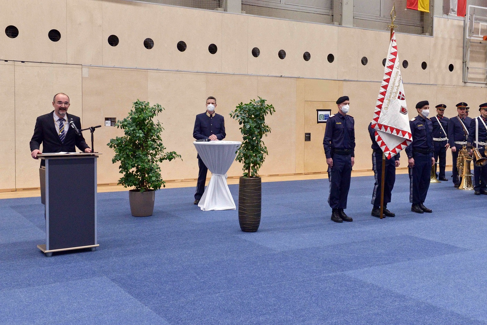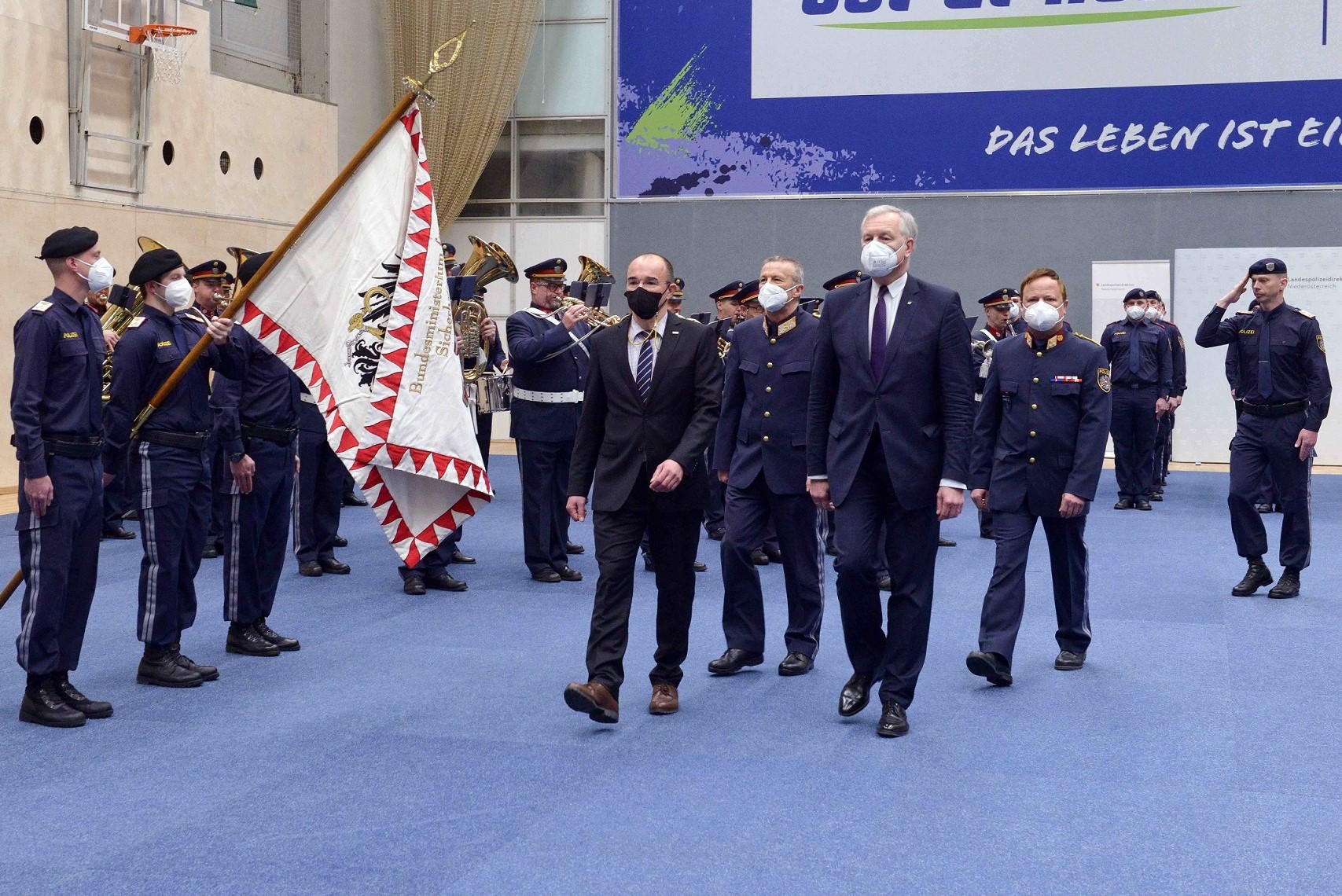Für die festliche musikalische Untermalung der Veranstaltung sorgten die Polizeimusikerinnen und Polizeimusiker der Landespolizeidirektion Niederösterreich unter der Leitung von Revierinspektorin Silvia Jäger.