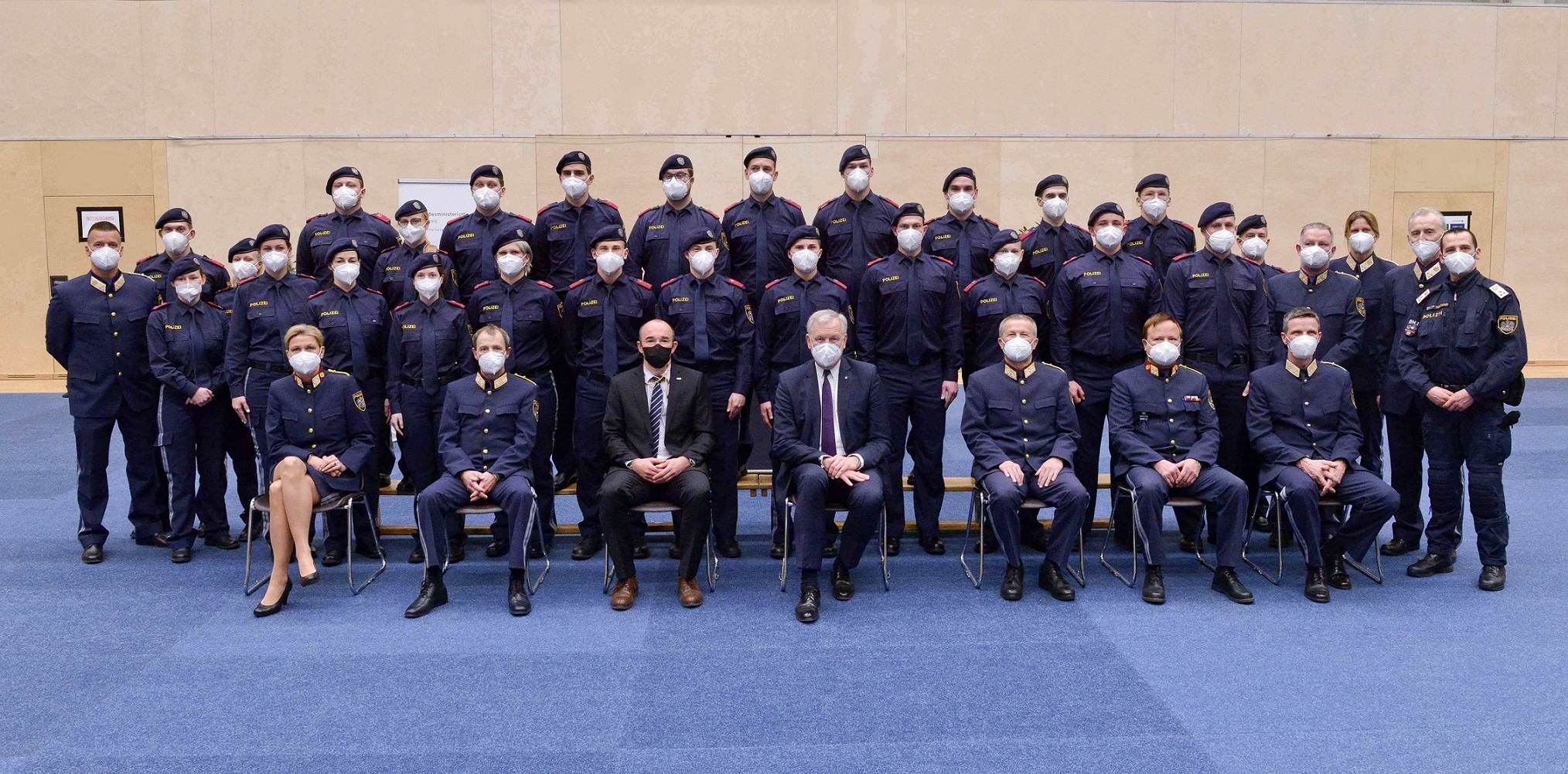 54 Frauen und 137 Männer wurden am 24. Februar 2022 bei einem Festakt im Sport.Zentrum.Niederösterreich in St. Pölten ausgemustert. Sie werden in den Bundesländern Burgenland, Niederösterreich, Oberösterreich, Kärnten und Steiermark in Verwendung genommen und die jeweiligen Polizeidienststellen verstärken.