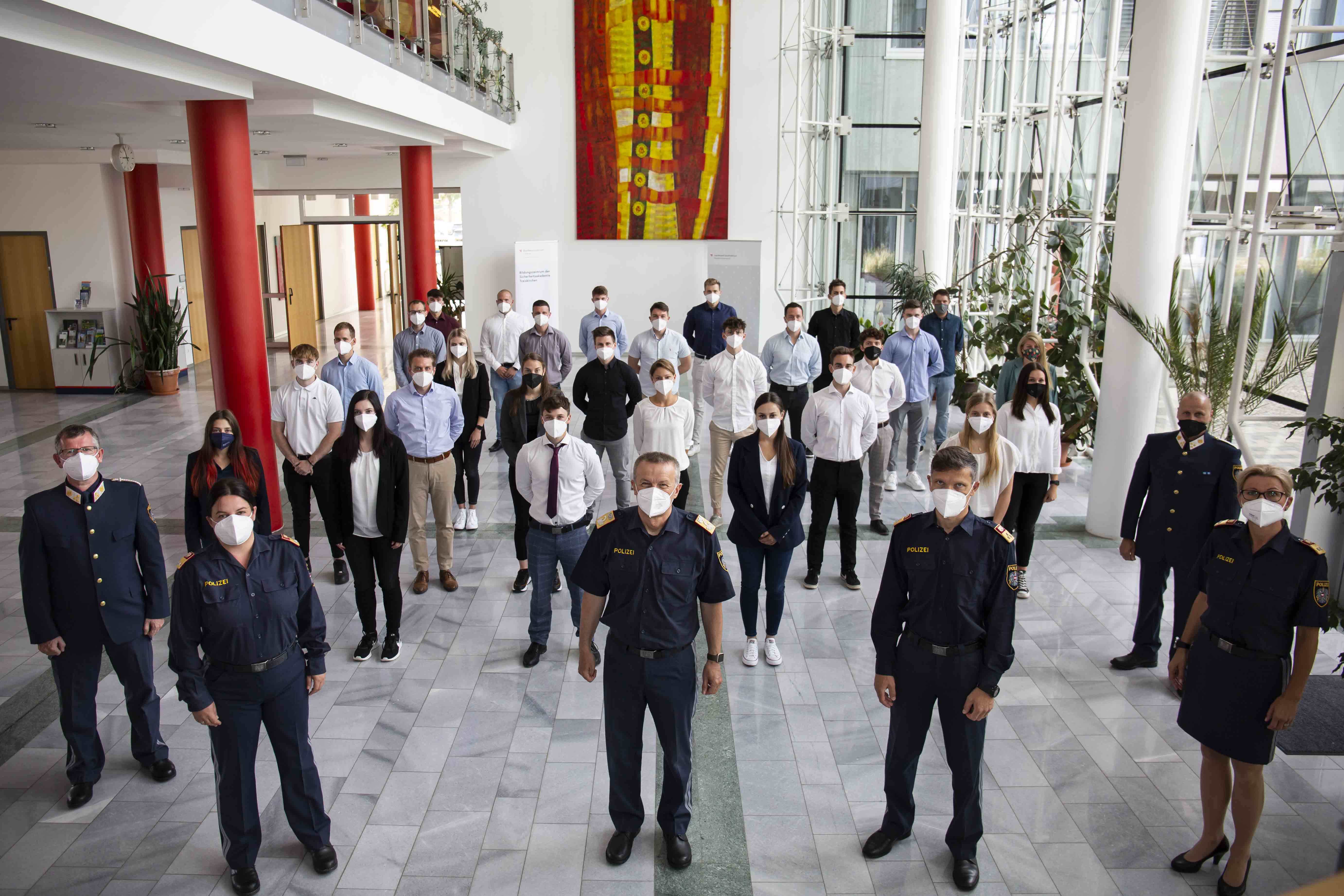 Mit 1. Juni 2021 haben 55 Bedienstete (16 Frauen und 39 Männer) in dem Bildungszentrum der Sicherheitsakademie Traiskirchen ihre zweijährige Grundausbildung begonnen. Gleichzeitig begannen 27 Bedienstete (7 Frauen und 20 Männer) im Bildungszentrum der Sicherheitsakademie Ybbs an der Donau ihre sechsmonatige Polizeiausbildung für den Fremden- und Grenzpolizeilichen Bereich.