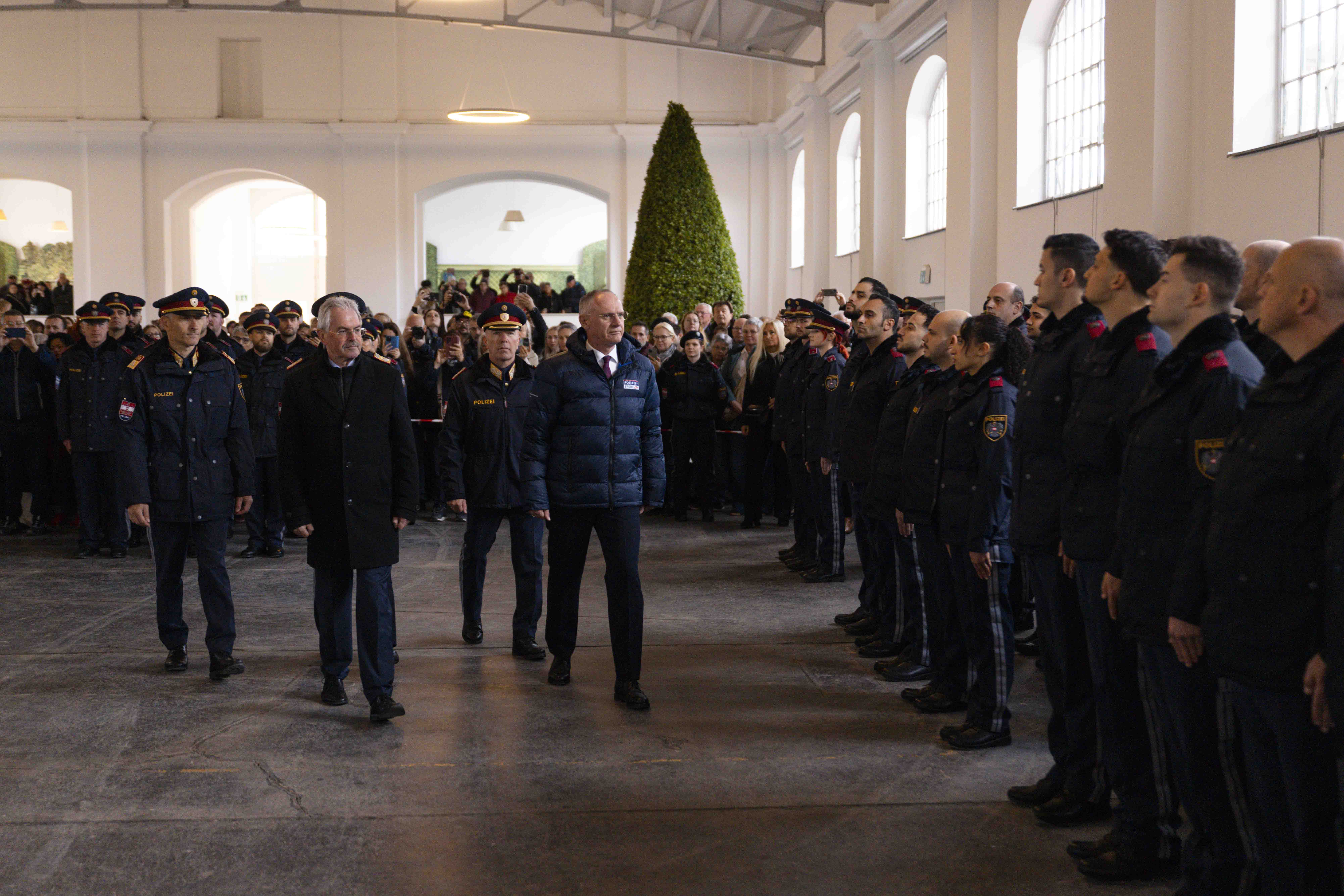 An der Feier nahmen unter anderem Innenminister Gerhard Karner, Präsident zum Niederösterreichischen Landtag Karl Wilfing und Landespolizeidirektor Franz Popp teil, die den frisch ausgemusterten Polizistinnen und Polizisten zu ihrem erfolgreichen Ausbildungsabschluss gratulierten.