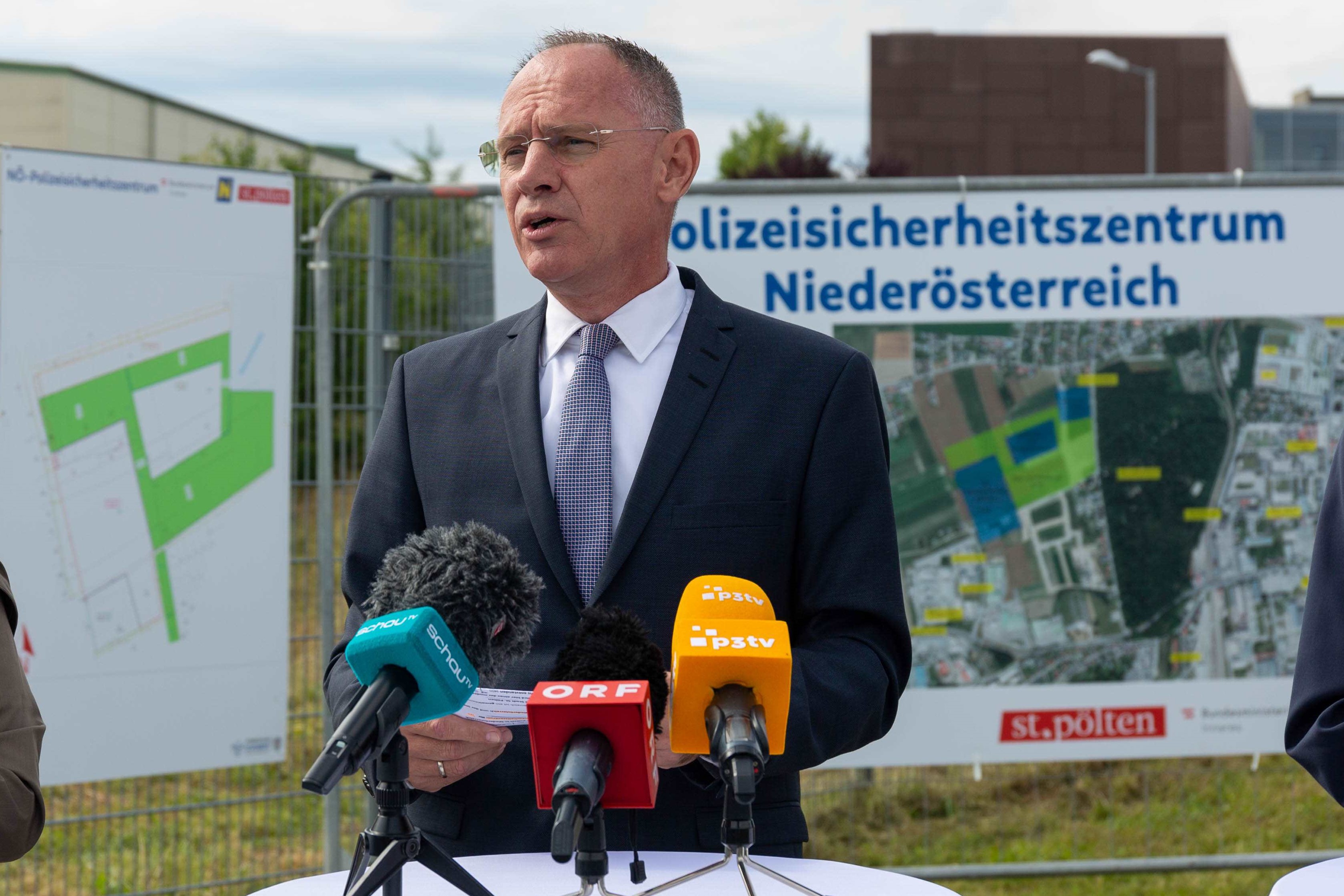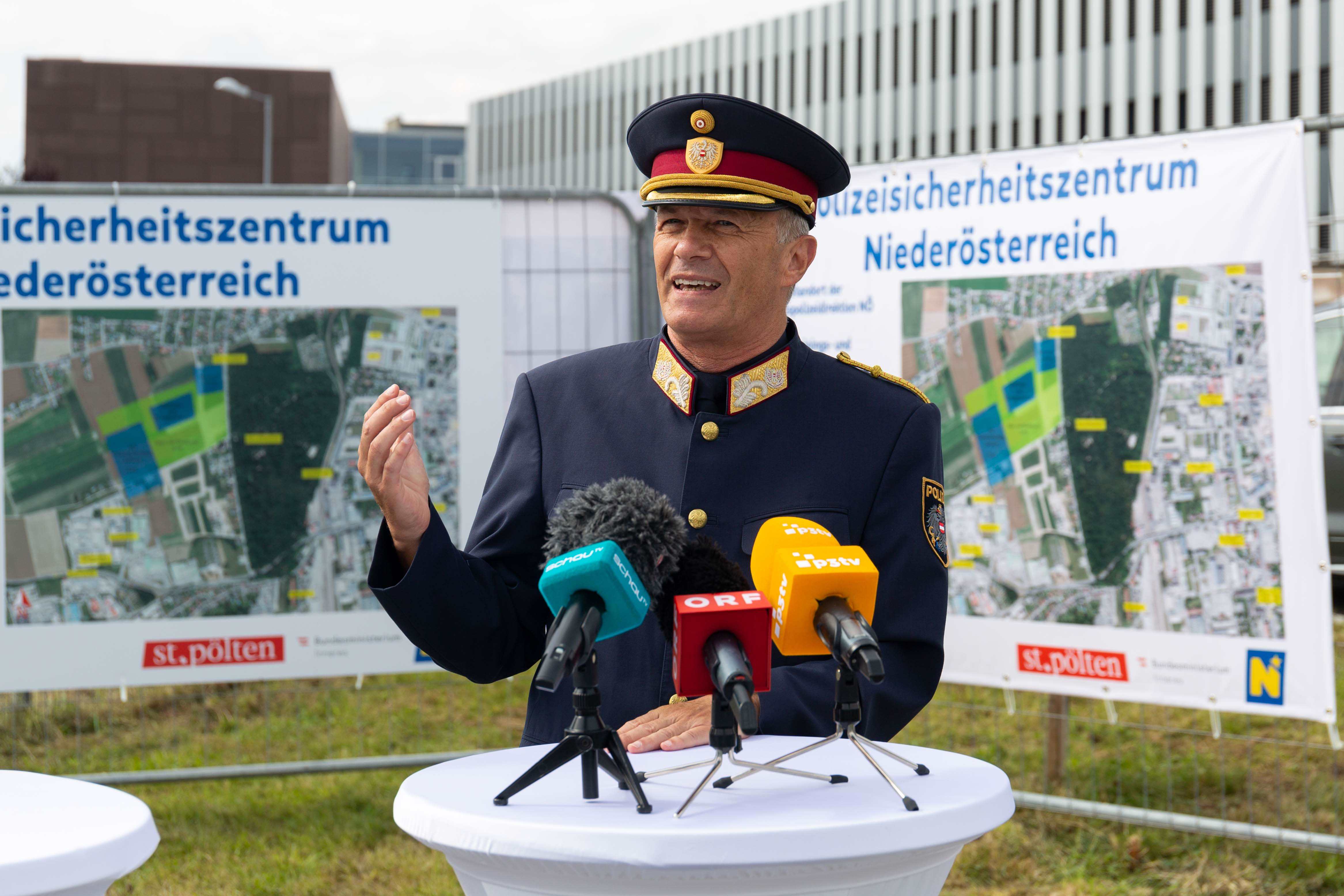 Landespolizeidirektor Franz Popp nannte das Projekt Sicherheitszentrum St. Pölten ein Zeichen des kräftigen Miteinanders von Bund, Land und Stadtgemeinde. "Vor allem ist das heute ein Freudentag für unsere Mitarbeiterinnen und Mitarbeiter, denn allen voran das Einsatz- und Trainingszentrum, das eine witterungsunabhängige und ganzjährige Trainingsmöglichkeit bieten wird, ist für unsere Polizistinnen und Polizisten von größter Wichtigkeit."