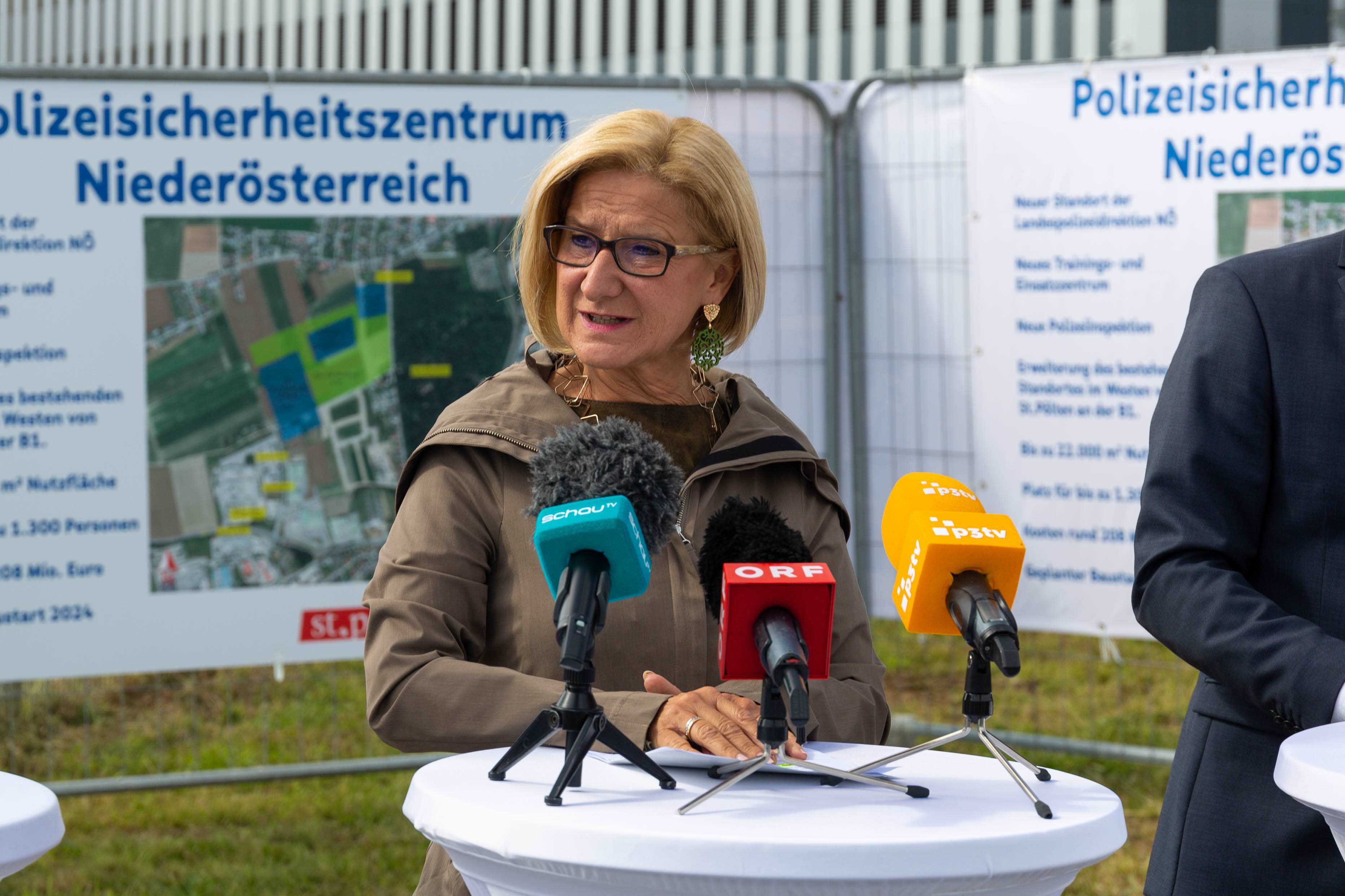"Ein schöner Tag für Niederösterreich, für die Landeshauptstadt, die Polizei – überhaupt für die gesamte Sicherheitsfamilie, denn heute setzen wir einen Meilenstein nach sehr viel Vorbereitung", begann Mikl-Leitner. "Auf einem Areal von 22.000 Quadratmetern wird ein Sicherheitszentrum gebaut, das Platz für 1.300 Personen bietet und Synergien bestmöglich nutzt, um das Sicherheitsgefühl in der Bevölkerung noch weiter zu stärken."