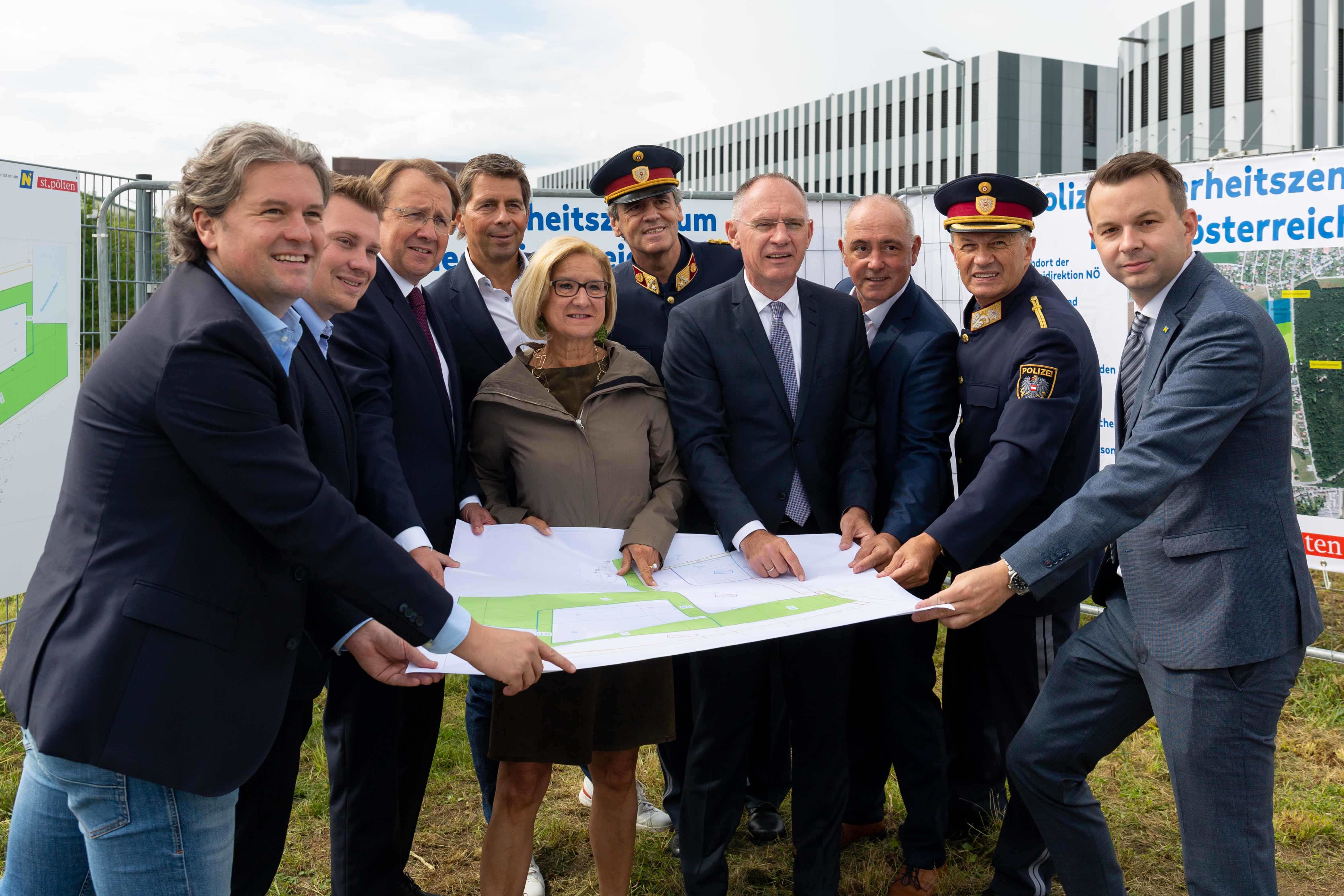 Landeshauptfrau Mikl-Leitner weiter: "Zur bereits ansässigen Logistikabteilung, dem Landeskriminalamt und der Diensthundeabteilung werden künftig auch das Stadtpolizeikommando und die Regionaldirektion des Bundesamtes für Fremdenwesen und Asyl Platz finden, vor allem aber das Herzstück: das Einsatz- und Trainingszentrum der Landespolizeidirektion Niederösterreich." Es solle dabei so wenig als möglich verbaut und so viele Grünflächen wie möglich beibehalten und auch neu geschaffen werden, erklärte die Landeshauptfrau außerdem. "Mein großer Dank gilt dem Innenministerium, der Landeshauptstadt und der Gebäudeverwaltung Niederösterreich", schloss Mikl-Leitner, "ohne deren Zusammenstehen und Zusammenhalten mit dem Land dieses Projekt nicht möglich wäre."
