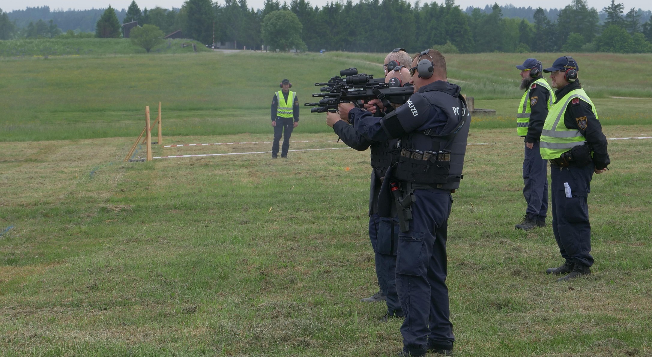 Die Schwerpunkte der Ausbildung waren wiederum das Scharfschießen mit den neu zugewiesenen Sturmgewehren StG 77 A3 um eine Handhabungssicherheit zu erreichen, der Robuste Raumschutz und Suchaktionen mit ballistischem Schutz im schwierigen Gelände unter Einbindung der Einsatzmittel Drohne, Mobile Einsatzzentrale und Diensthunde in Anlehnung an die Lage in Stiwoll. Die Häuserkampfanlage Steinbach und das umliegende Gelände und Schießstände boten optimale Bedingungen für das Übungsvorhaben, welches in bewährter Weise vom Fachbereich 2 der Einsatzabteilung geplant und vom Team um GrInsp Thomas Schalko mit den EE- und ODP-Trainer*innen umgesetzt wurde. War das Wetter an den ersten beiden Übungstagen noch gut, so verschärften am letzten Übungstag sintflutartige Regenfälle die Anforderungen an die eingesetzten Kräfte und Diensthunde. Wie die Bilder zeigen, konnten weder schwierigstes Gelände noch meterhohe Brennnessel die hochmotivierten EE-Bediensteten und Diensthundeführer*innen am Übungseinsatz hindern.