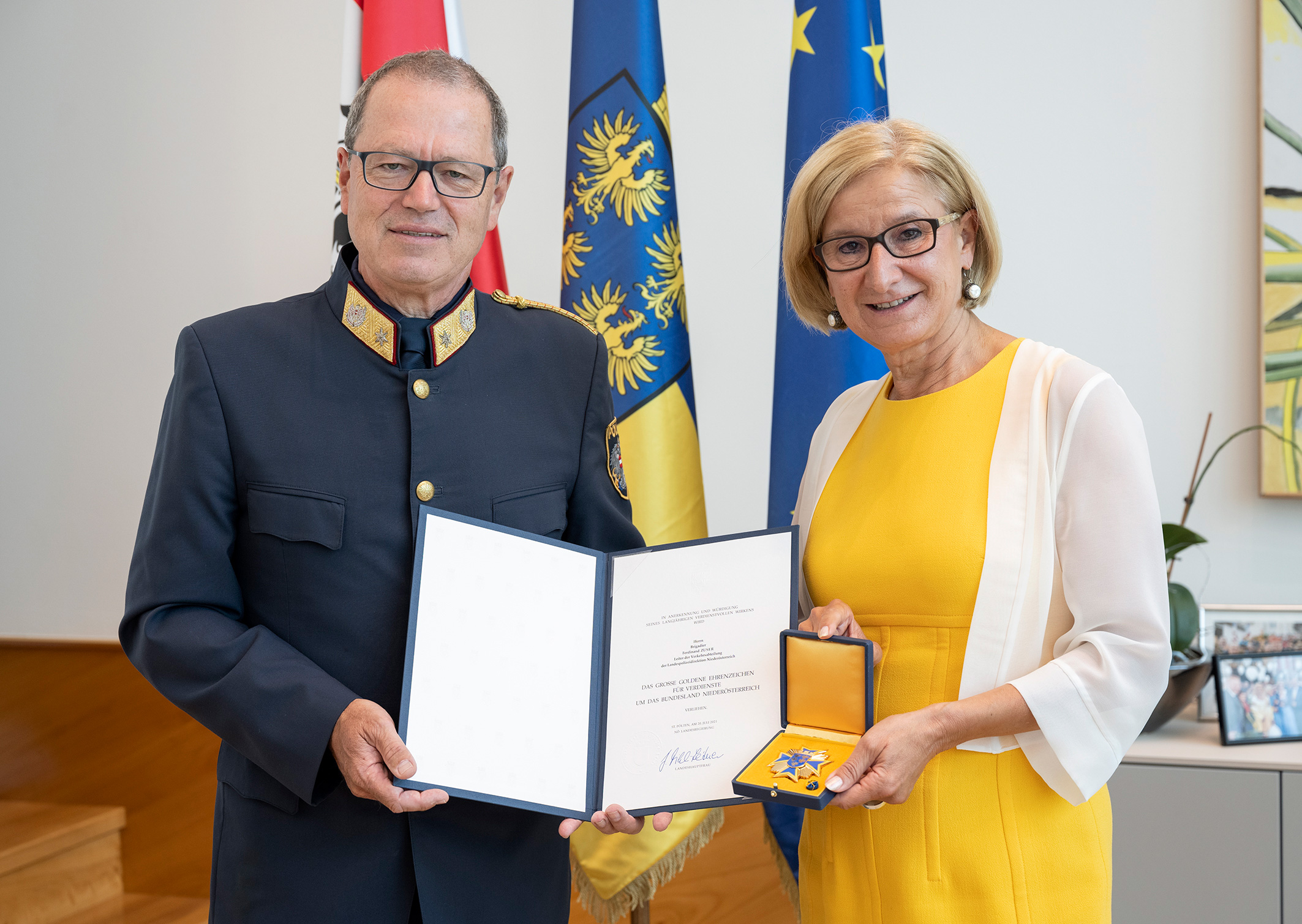 Zusätzlich zu der Verleihung des neuen Dienstgrades wurde dem frischgebackenen Generalmajor noch eine Ehrung des Landes Niederösterreich zuteil. Die Landeshauptfrau Mag. Johanna Mikl-Leitner verlieh ihm am 20. Juli 2021 das Große Goldene Ehrenzeichen für Verdienste um das Bundesland Niederösterreich, wodurch sein erfolgreiches Wirken und die qualitätsvolle Zusammenarbeit mit dem Land Niederösterreich für die Sicherheit im Straßenverkehr sichtbar dokumentiert wurde.