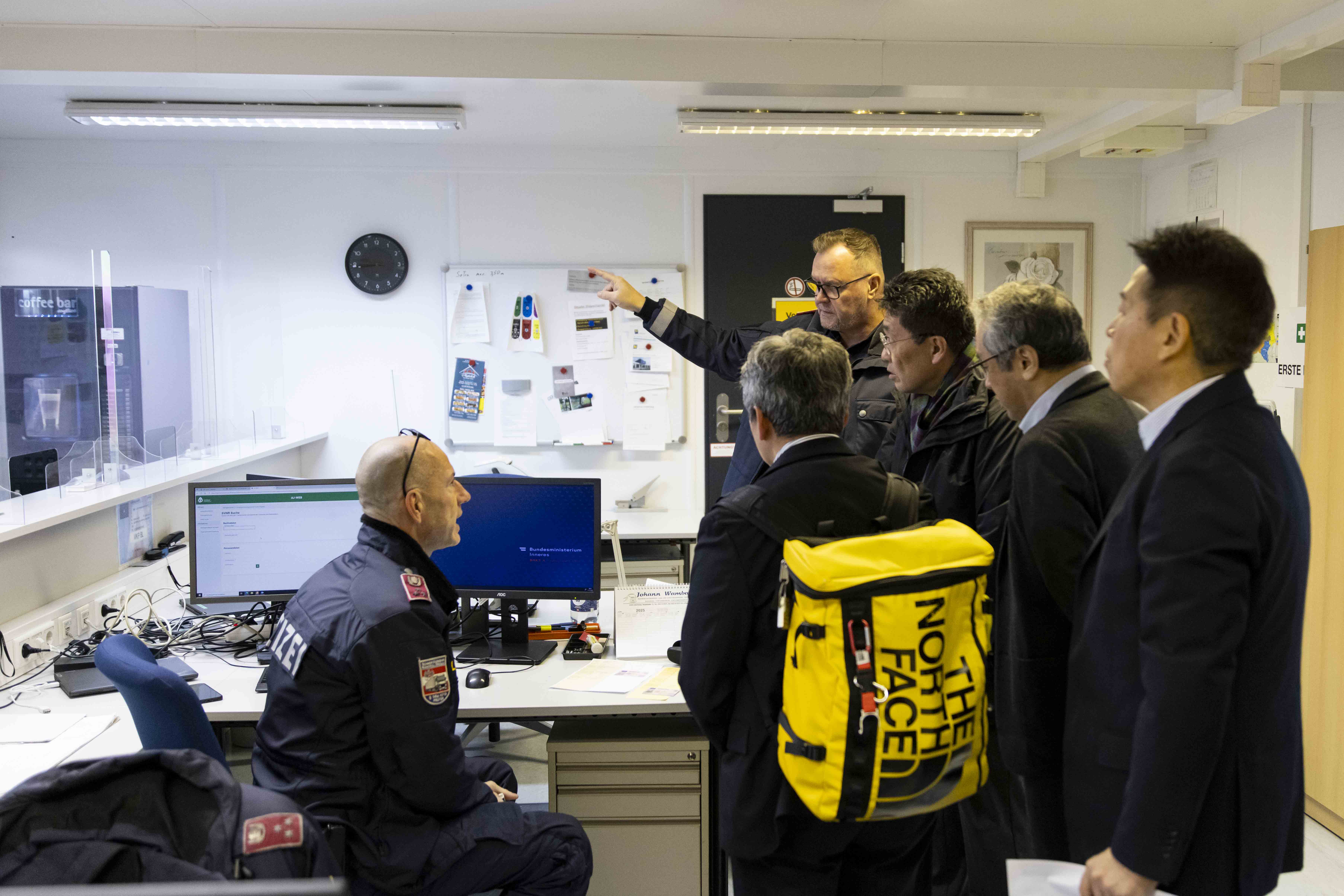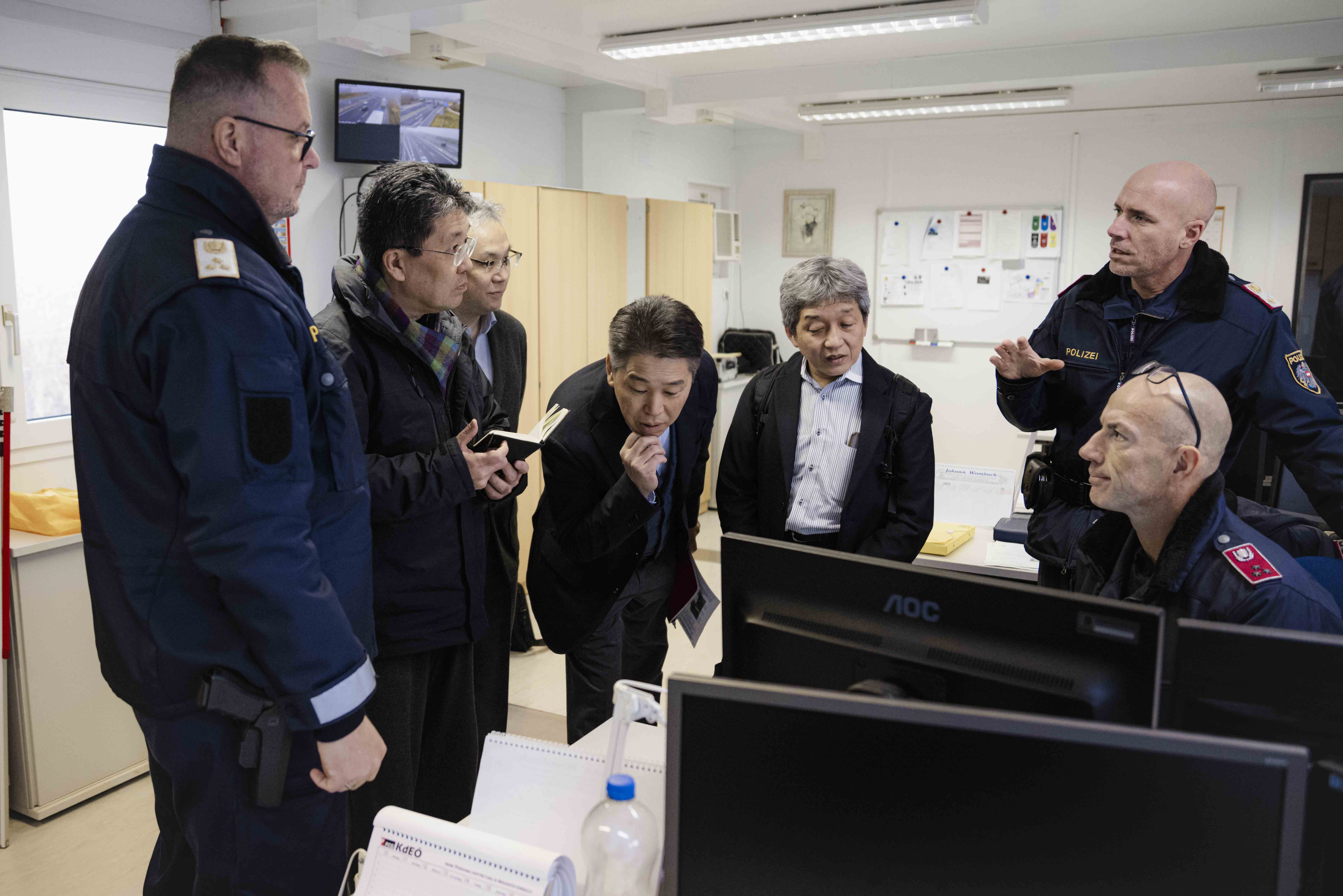 Die japanische Delegation erhielt seitens des Leiters der Landesverkehrsabteilung NÖ, Brigadier Willi Konrath, BA MSc, seinem Mitarbeiter ChefInsp Thomas Gersch und ChefInsp Gerhard Fassolder des BMI eine umfassende Darstellung des Ablaufs einer Verkehrskontrollstelle sowie eine Besichtigung der Infrastruktur des Kontrollplatzes.