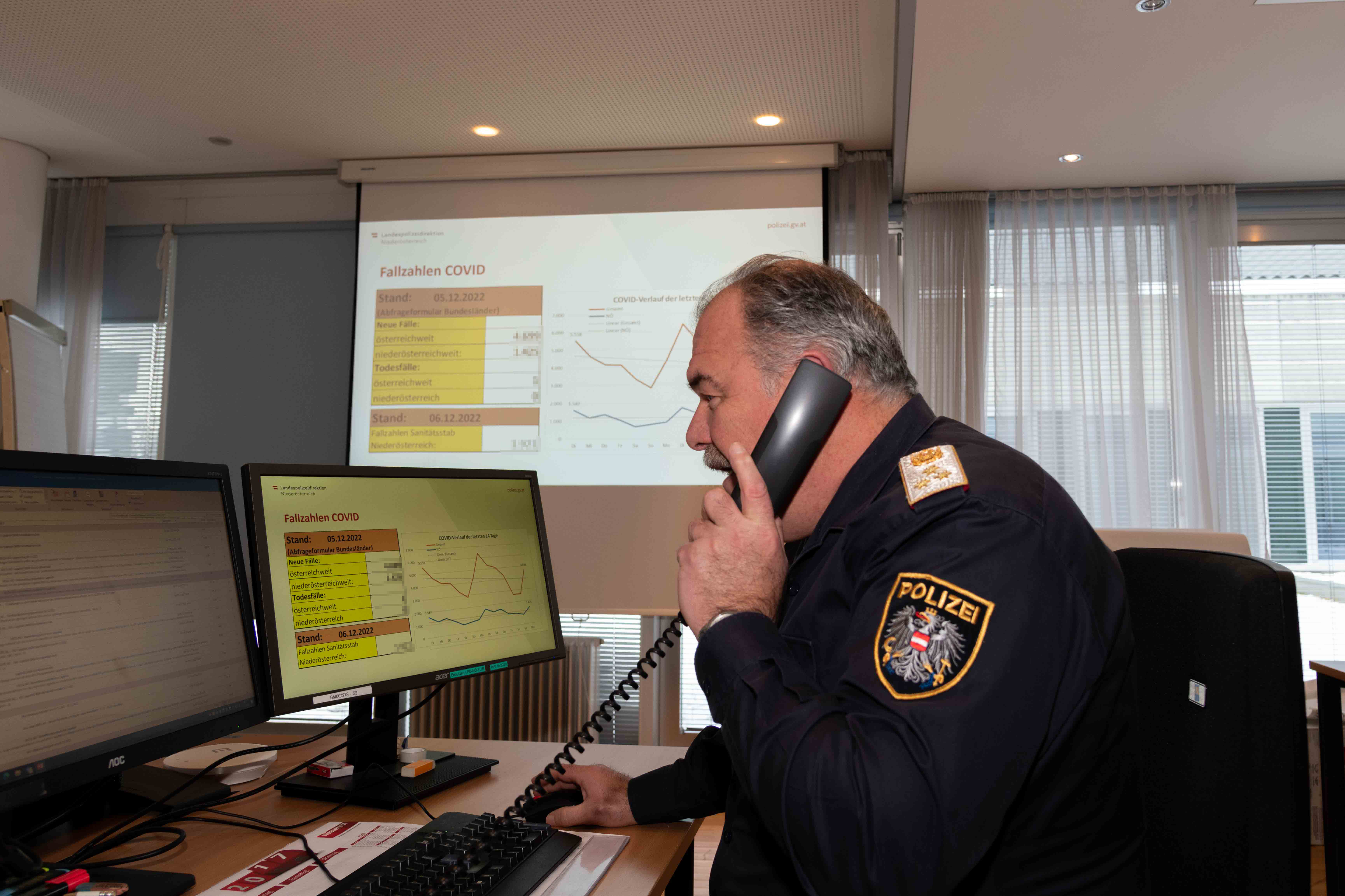 Zusätzlich zum eingerichteten SKKM-Koordinationsstabes im BMI wurde mit 13. März 2020 auch bei der Landespolizeidirektion Niederösterreich ein polizeilicher Einsatzstab zur Bewältigung der COVID19-Pandemie eingerichtet. Die Landespolizeidirektionen wurden ebenfalls mit der Errichtung einer BAO (besondere Aufbauorganisation) zur Abarbeitung einer strategischen und koordinierenden Stabsarbeit beauftragt. Der Einsatzstab wurde aufgrund der stetig wachsenden polizeilichen Aufgaben vorwiegend zur Unterstützung der Behörden (Gesundheitsbehörden) und der Koordinierung und Unterstützung der örtlichen Einsatzkräfte errichtet. Der Einsatzstab war für die Bewältigung der Vielfalt an polizeilichen Aufgaben und die Koordinierung einer effizienten und einheitlichen Zusammenarbeit in dieser besonderen Lage (Pandemie) verantwortlich.