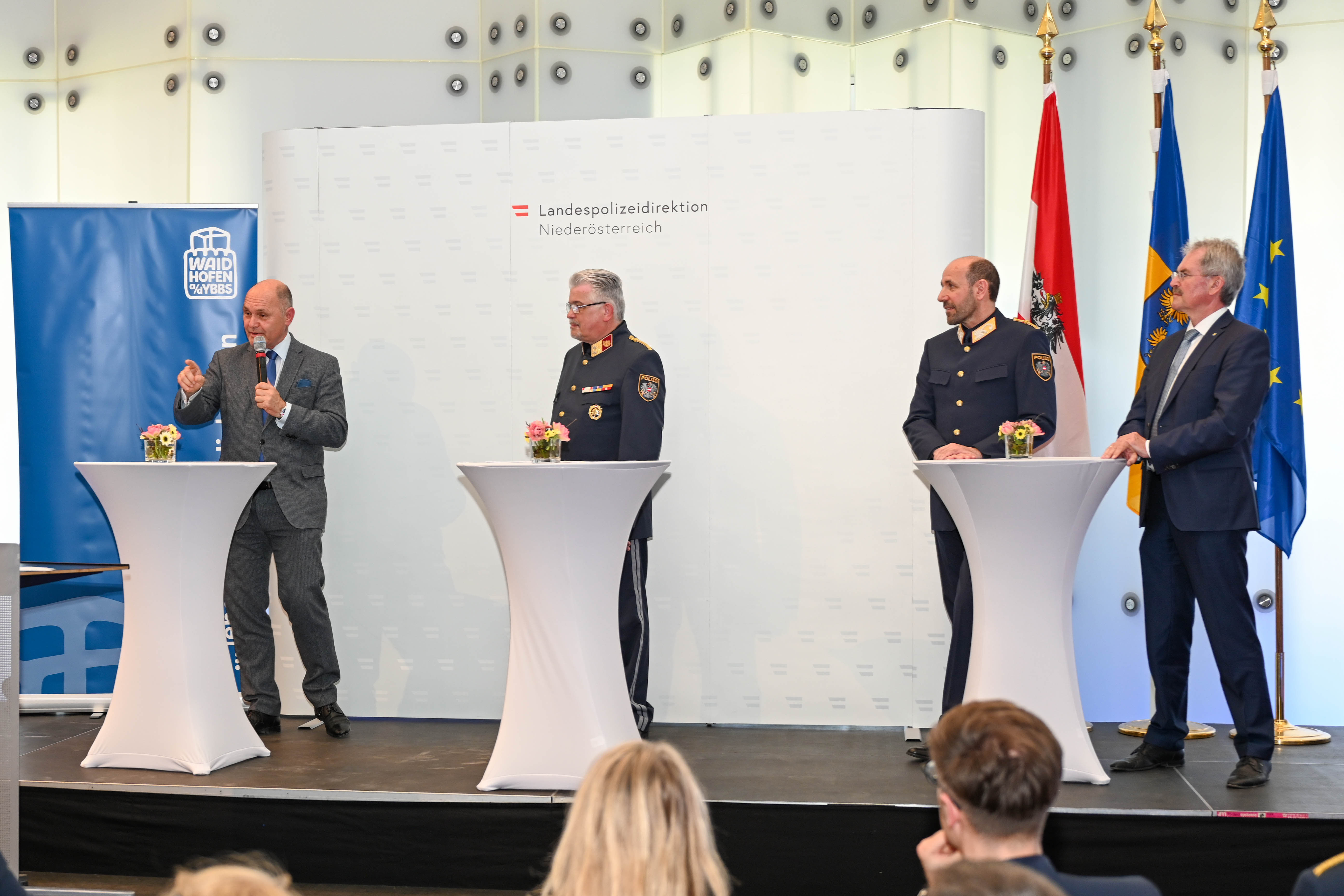 Die Polizeiinspektion Waidhofen an der Ybbs wurde am 29. April 2022 feierlich eröffnet. Der Landespolizeidirektor Franz Popp, BA MA, konnte dabei den Präsidenten des Nationalrates Mag. Wolfgang Sobotka, den Generaldirektor für die öffentliche Sicherheit Mag. Dr. Franz Ruf, MA, den NÖ Landtagspräsidenten Mag. Karl Wilfing, den Bürgermeister der Stadt Waidhofen/Ybbs Mag. Werner Kramer, den Inspektionskommandanten ChefInsp Gerald Eslitzbichler und zahlreiche weitere Ehrengäste begrüßen.