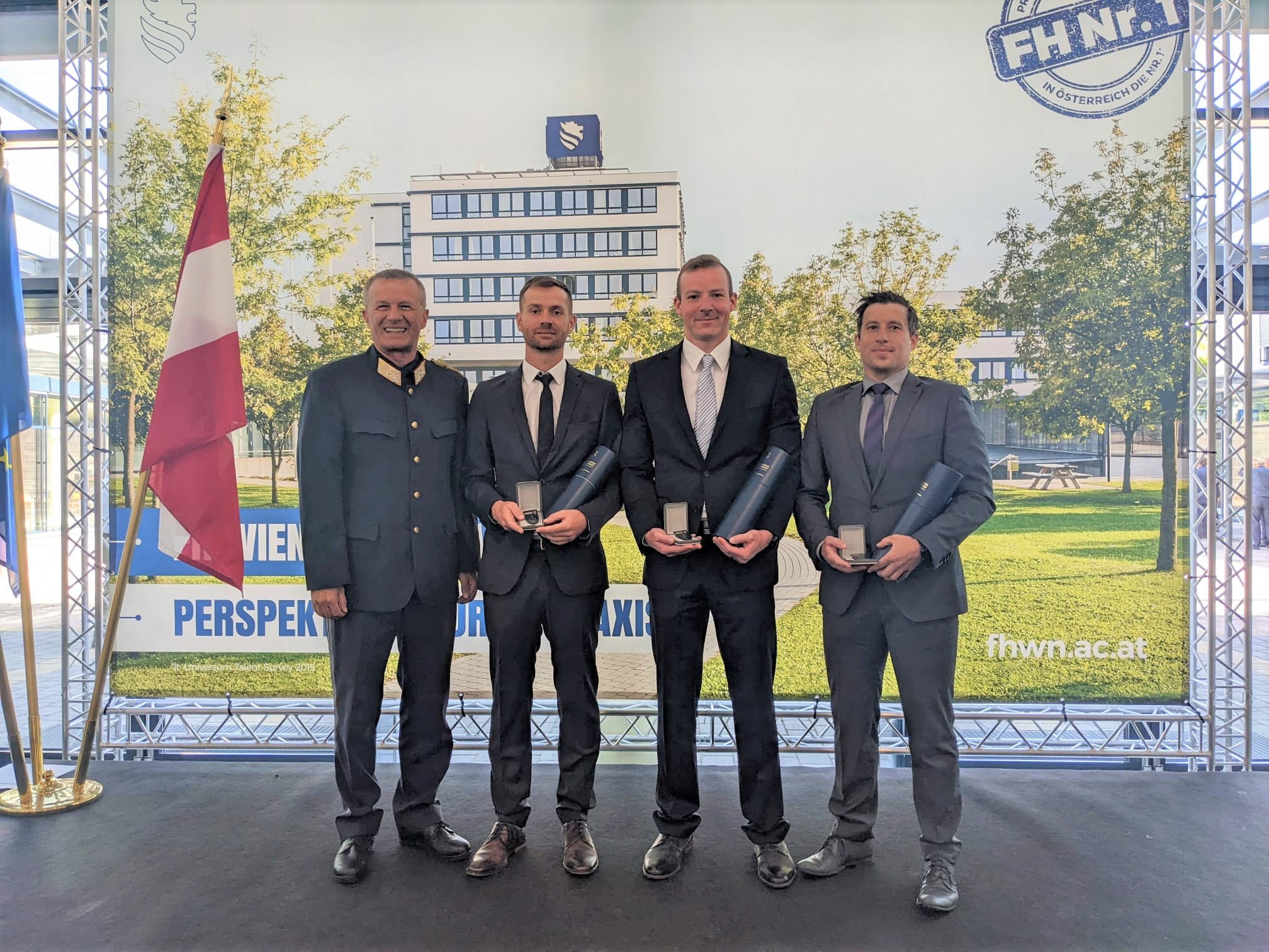 "Ich verspreche, den Wissenschaften in Wahrhaftigkeit zu dienen, ihre Ziele zu fördern, das durch das Studium erworbene Wissen verantwortungsvoll einzusetzen und dadurch an der Lösung der Probleme der menschlichen Gesellschaft mitzuwirken. Ich verspreche weiters, in meinem Verhalten das allgemeine Wohl zu beachten, die natürlichen Lebensgrundlagen zu schützen, meiner Universität verbunden zu bleiben und mich dadurch des akademischen Grades würdig zu erweisen." Mit diesen Worten graduierten die Absolventen Obstlt MMag. Christian Dangl, BA MA, stellvertretender Leiter der Fremden- und Grenzpolizeilichen Abteilung der Landespolizeidirektion Niederösterreich und Mjr Philipp Harold, BA MA, stellvertretender Bezirkspolizeikommandant in Tulln, an der Fachhochschule Wiener Neustadt.