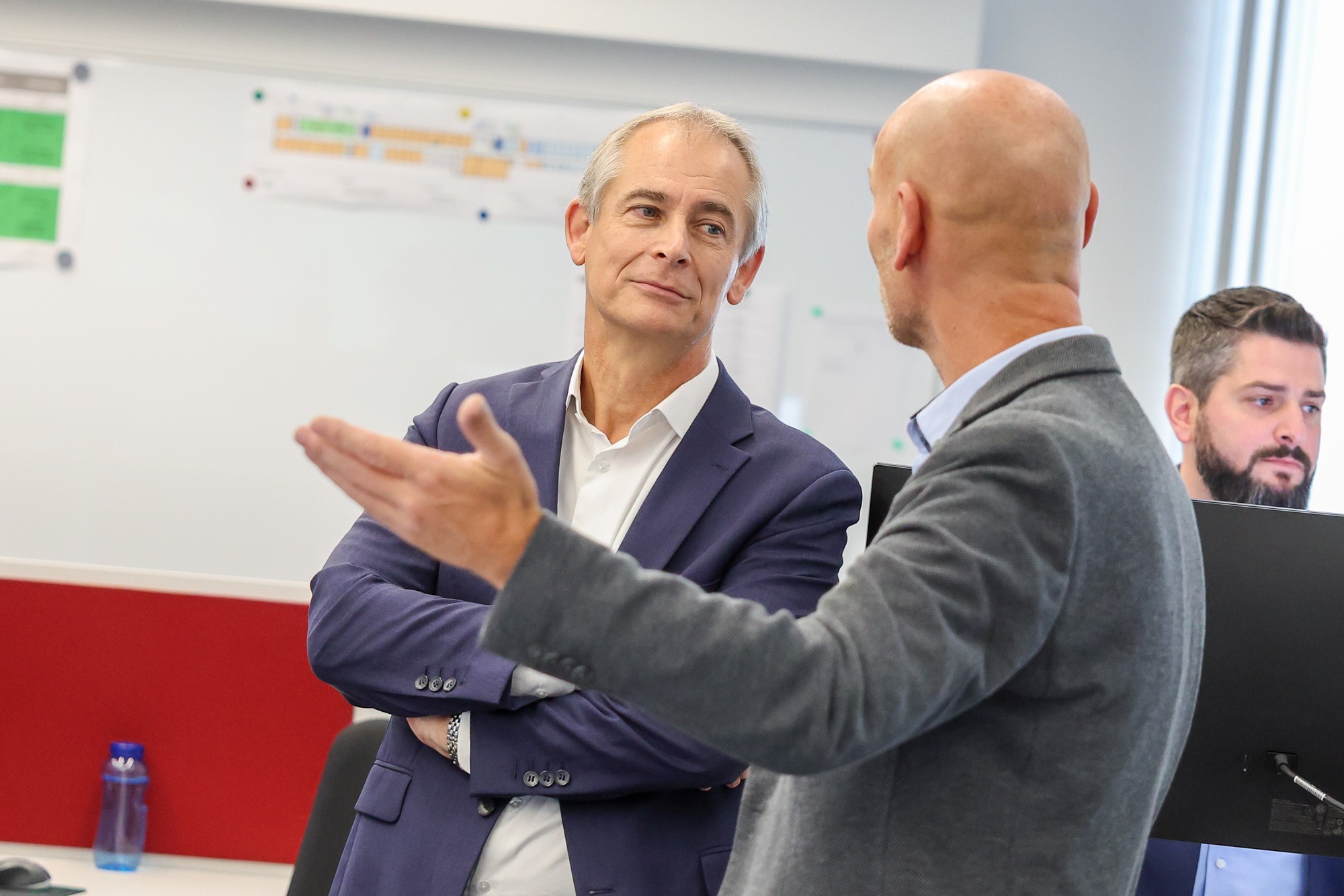 Achatz im Gespräch mit den Führungskräften der Landespolizeidirektion. ©  LPD OÖ/Michael Dietrich