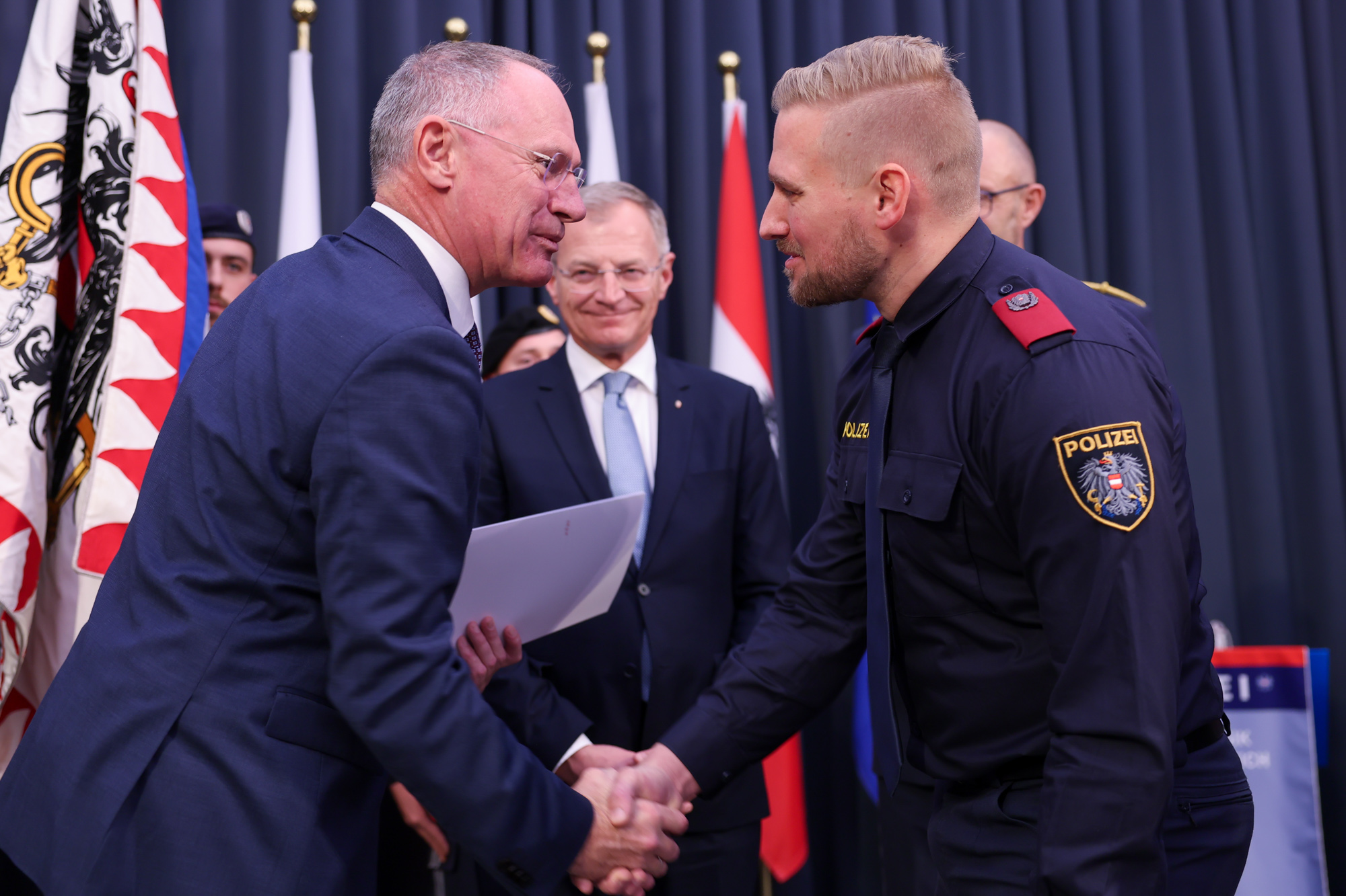 Innenminister Gerhard Karner gratulierte den stolzen AbsolventInnen. ©  LPD