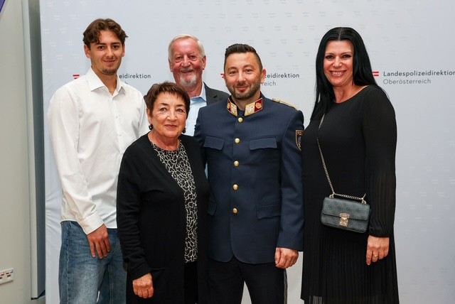 Jasmin Reiter inmitten ihrer stolzen Familie. © LPD OÖ/Michael Dietrich