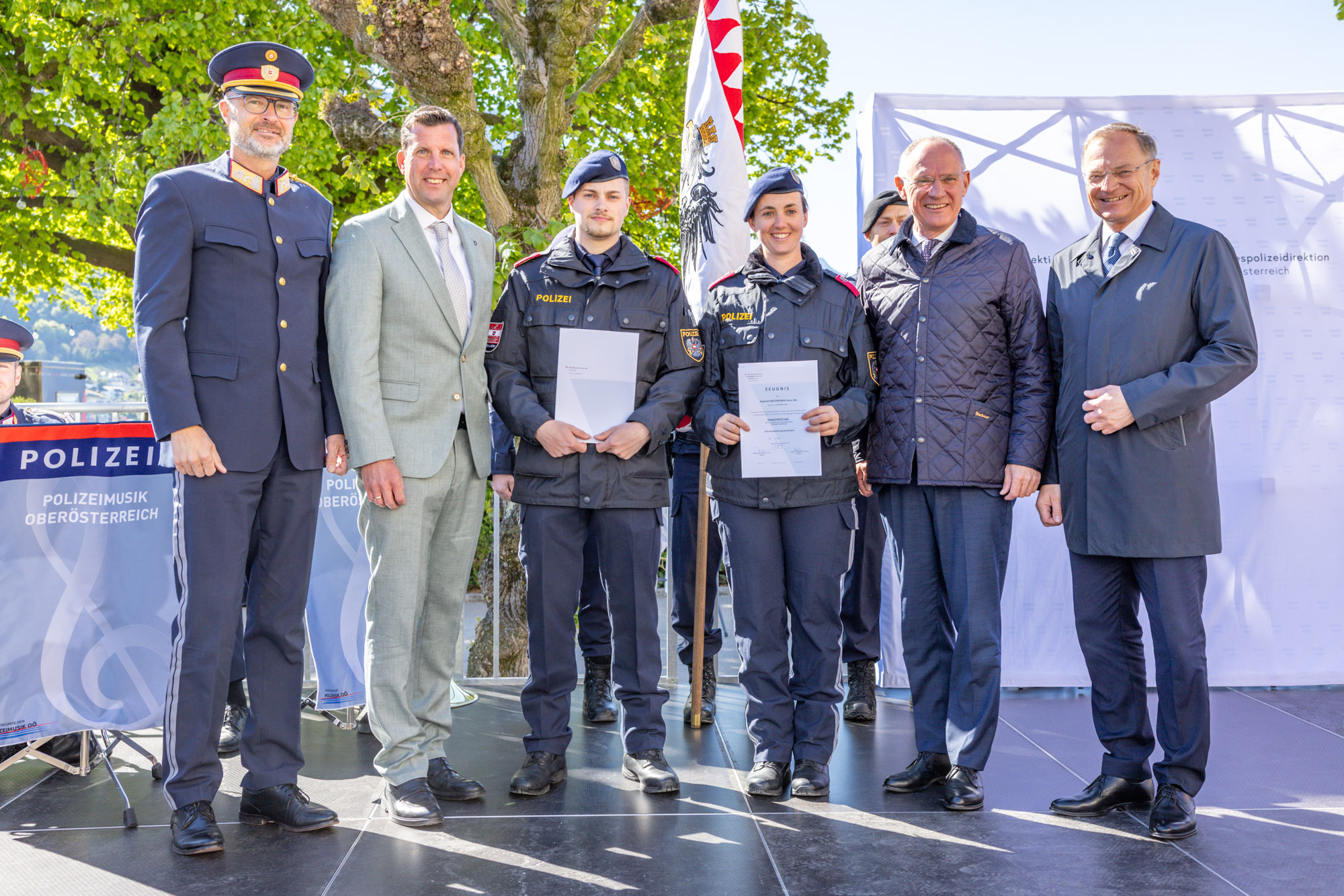 Am Ufer des Traunsees feierten 143 Aspirantinnen und Aspiranten von insgesamt sechs Polizeigrundausbildungslehrgängen der Bildungszentren Linz und Wels vor herrlicher Kulisse ihren Lehrgangsabschluss. "Die Stärkung der Exekutive geht weiter – fast 150 zusätzliche Polizistinnen und Polizisten für Oberösterreich sind der beste Beweis dafür", freute sich Innenminister Gerhard Karner über den Zuwachs für die Polizei. Der aktuelle Personalhöchststand an Polizistinnen und Polizisten wird damit nachhaltig abgesichert.