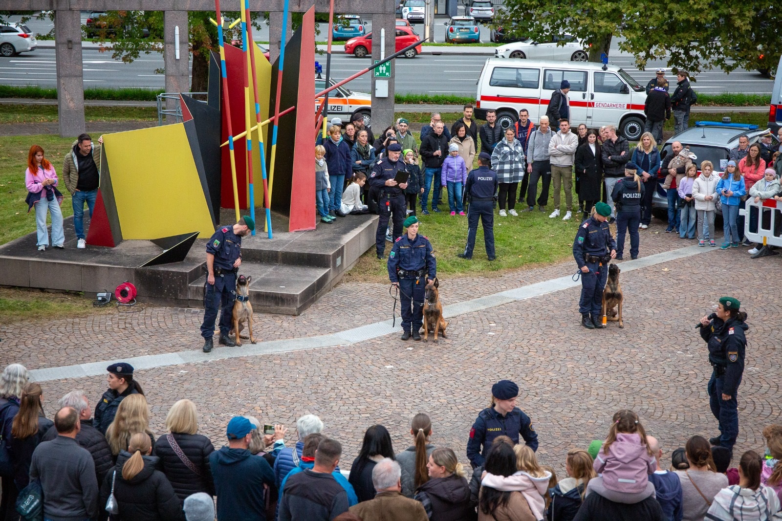 Bei einem umfangreichen Rahmenprogramm konnten sich die Zuschauer ein Bild von Teilaufgaben und –bereichen der Polizei machen. Spannende Vorträge, Vorführungen der Polizeihunde, Schnitzeljagd für die Kleinen, alte und moderne Fahrzeuge und Gerätschaften, Prävention und Kaffee bei Gemeinsam.Sicher sowie viele historische Gendarmerie- und Polizeifakten garantierten spannende Stunden für die zahlreichen Besucher.