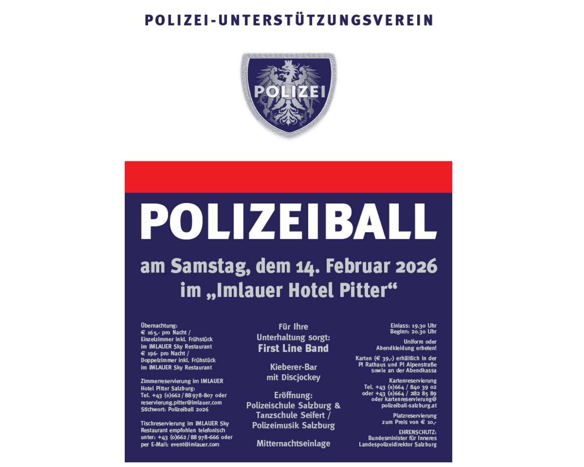 Die 77. Ausgabe des Polizeiballs findet nächstes Jahr am 14. Februar im „Imlauer Hotel Pitter“ statt.
