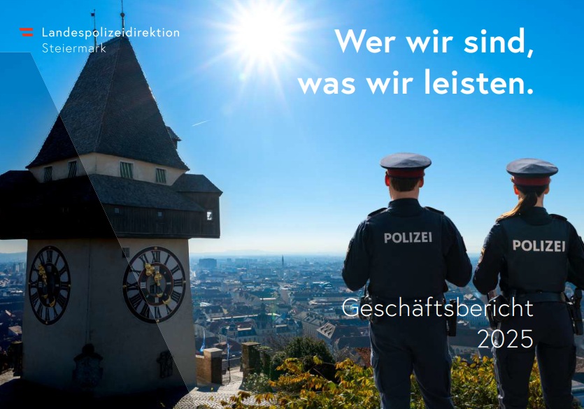 Mit dem Geschäftsbericht legt die Landespolizeidirektion Steiermark ein Konvolut an Informationen über die Leistungen und Entwicklungen der steirischen Polizei im Jahr 2025 offen. ?