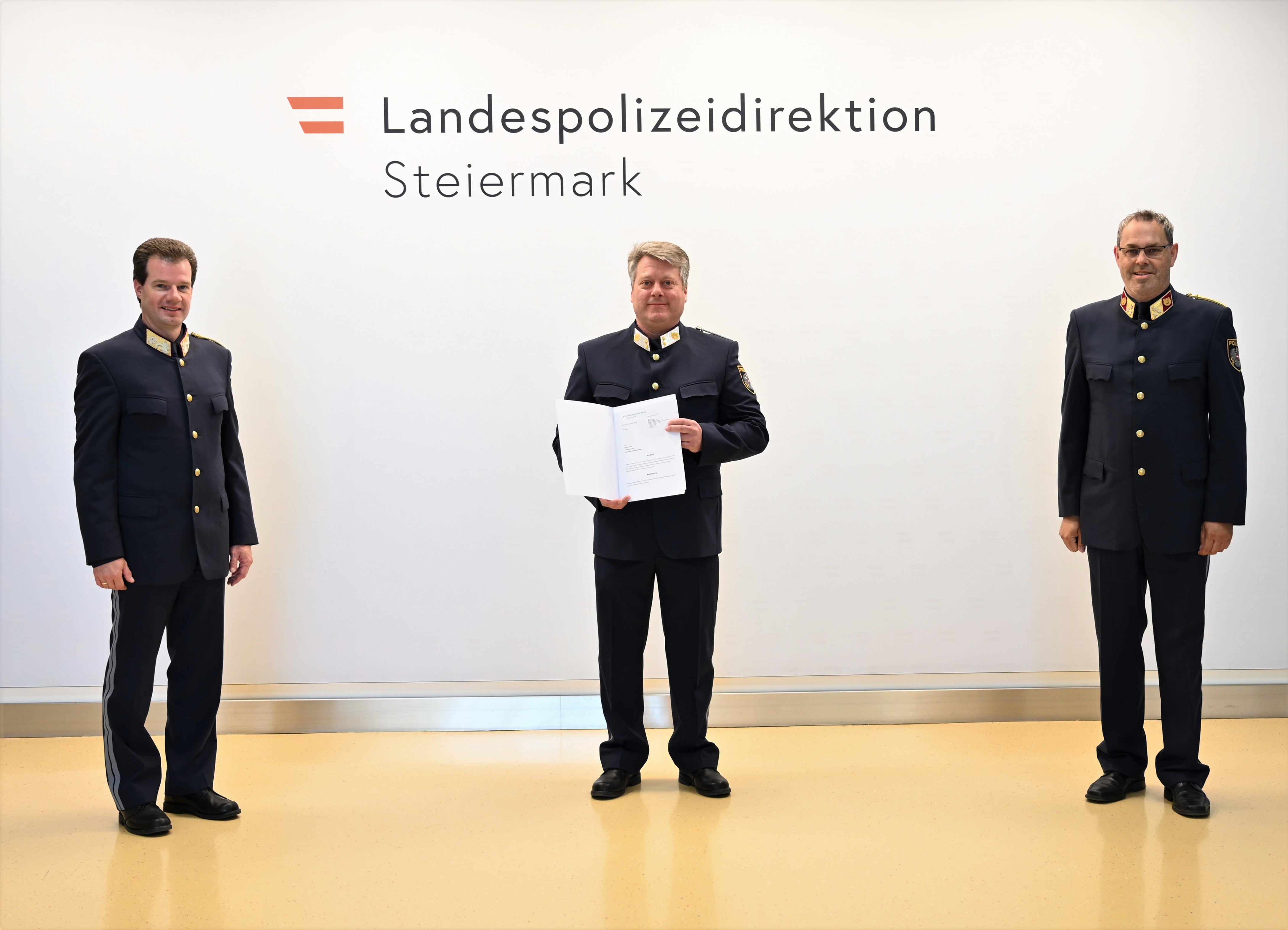 Landespolizeidirektor Gerald Ortner überreichte den neuen Inspektionskommandanten die Dekrete. Er wünschte ihnen für ihren weiteren Weg sowie für die kommenden neuen Aufgaben und Herausforderungen alles erdenklich Gute.