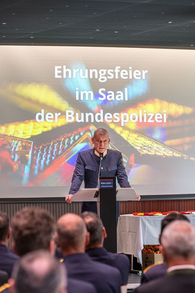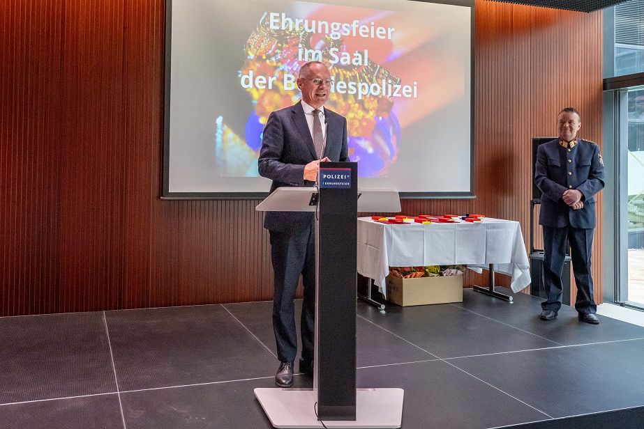 Am 7. Oktober 2025 fand im "Saal der Bundespolizei" im neuen Sicherheitszentrum der Landespolizeidirektion Tirol in Innsbruck die feierliche Ausfolgung von neun Bundesauszeichnungen durch Innenminister Mag. Gerhard Karner und Landespolizeidirektor HR Mag. Helmut Tomac statt. An der Veranstaltung nahmen neben den beiden stv. Landespolizeidirektoren GenMjr Johannes Strobl BA und HR Mag. Johannes Freiseisen MA, auch einige Behördenvertreter und Repräsentanten der Polizei und der Personalvertretung teil. Für die würdevolle musikalische Umrahmung des Festaktes sorgte ein Quintett der Polizeimusik Tirol.