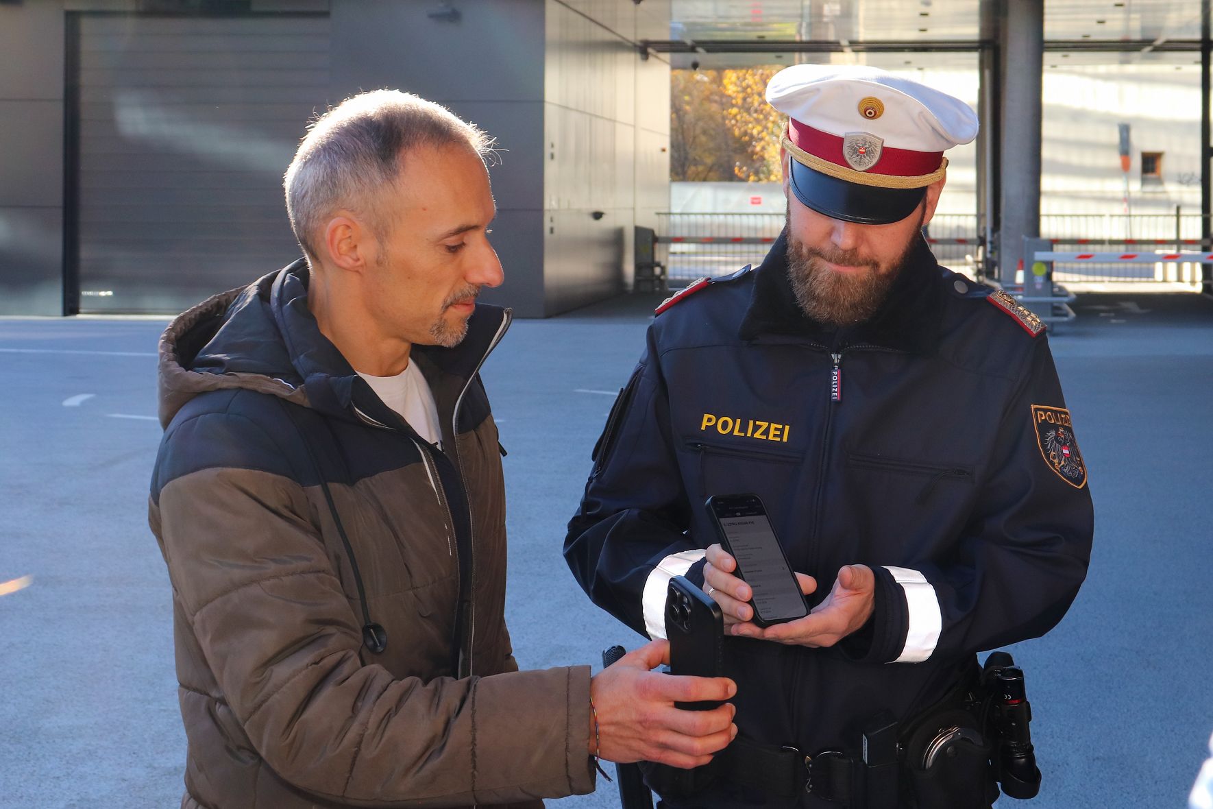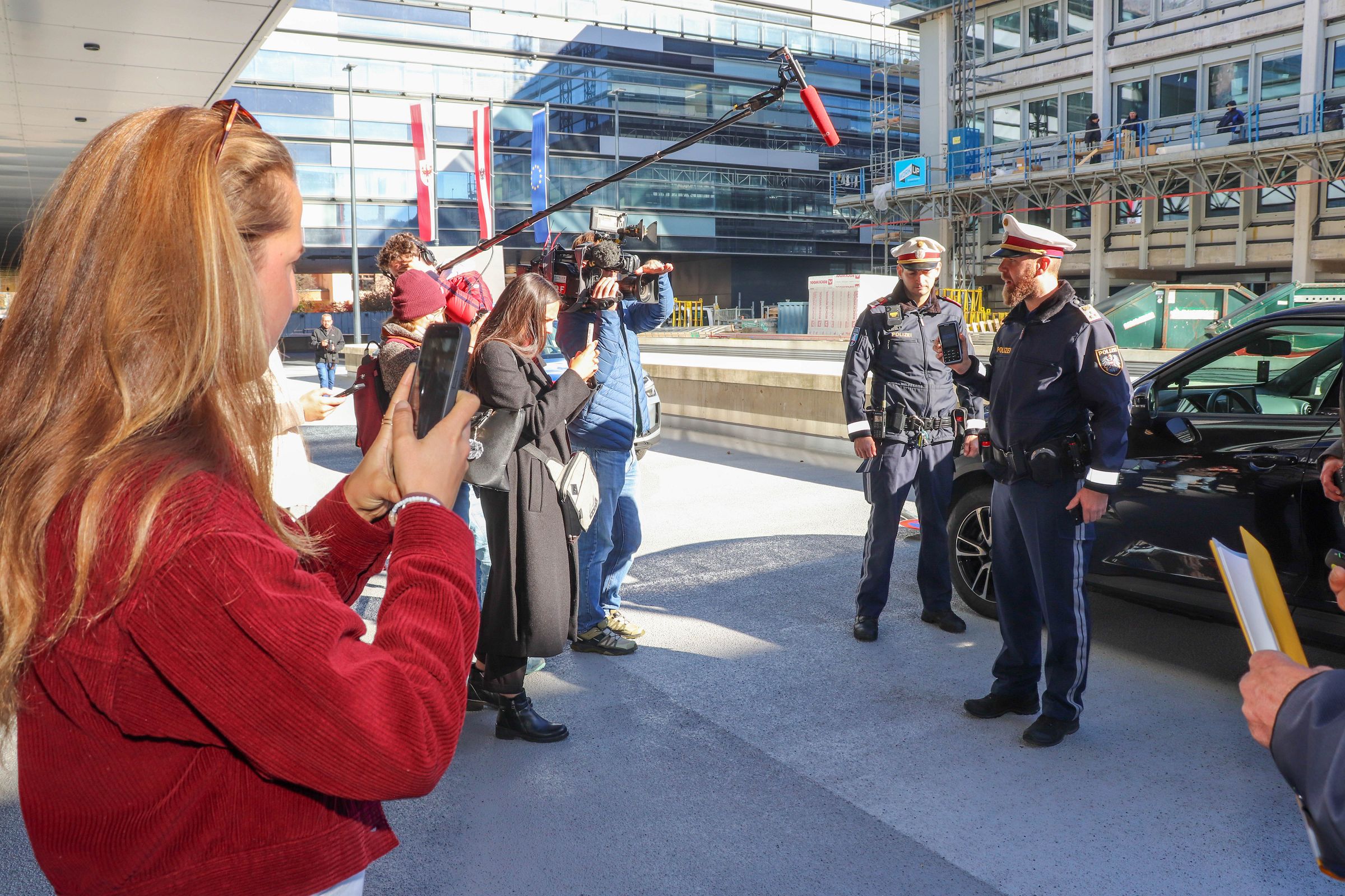 Beim Praxisteil des Journalistentages wurde anhand eines von Polizisten des Büro L1, der LVA und des Büros A1 gekonnt nachgestellten Sachschadenunfalles den Medienvertretern die praktische Anwendung der verschiedenen Polizei-Apps, mobilen Bankomatkasse sowie der BWC vorgeführt und die Vorteile für die einschreitenden Polizeibediensteten und die Parteien erläutert.