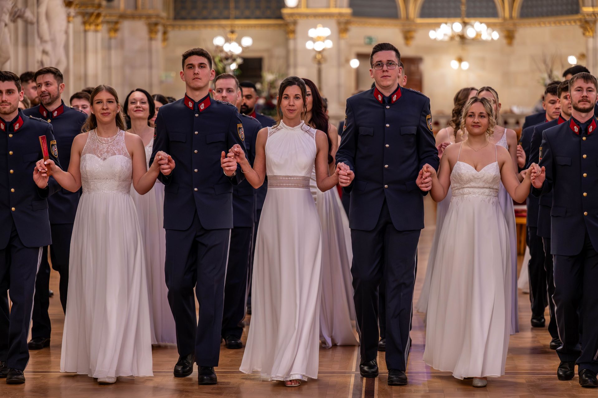 Die festliche Eröffnung erfolgte traditionell durch das Streichorchester der Polizeimusik Wien, das mit einer feierlichen Fanfare den Abend einleitete. Im Anschluss stimmte das Jungdamen- und Jungherrenkomitee, unter der Leitung der Tanzschule Elmayer-Vestenbrugg, die Ballgäste mit einer eindrucksvollen Choreografie auf den festlichen Abend ein. Hofrätin Daniela Tunst vom Büro für Öffentlichkeitsarbeit hieß die Gäste herzlich willkommen. Zu den Ehrengästen zählten unter anderem Innenminister Gerhard Karner, Landespolizeipräsident Gerhard Pürstl sowie Vizebürgermeisterin Kathrin Gaál, die in Vertretung von Bürgermeister Michael Ludwig einige feierliche Worte an das Publikum richtete und den Ball offiziell eröffnete.